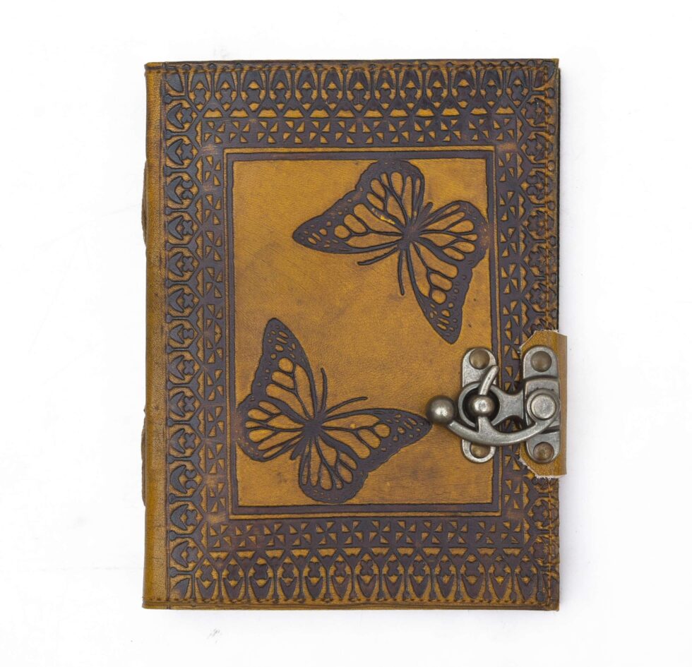 vintage handmade leather journal. Crafted with genuine leather, it radiates authenticity and charm, perfect for those who appreciate classic craftsmanship. The premium antique lock closure adds a touch of elegance and security, ensuring your thoughts and memories are safeguarded within its pages. Inside, you’ll discover 200 White handmade pages, providing ample space for your musings, sketches, and stories to unfold. Whether it’s for journaling, sketching, or planning, this versatile journal is a timeless companion for your creative endeavors. Treat yourself or a loved one to this exquisite piece, a celebration of tradition and creativity